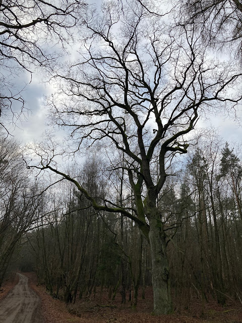 Osada leśna Ludwikowo leży w Puszczy Zielonce, w gminie Czerwonak. Wokół tejże osady rozciągają się malownicze, ładne lasy i przebiega fragment drogi, która jest zwana Traktem Poznańskim. Idąc tą drogą od miejsca najbliższego owej osadzie do uroczyska Maruszka będziemy mijać po obu stronach wiele pięknych, sędziwych i osiągających niebagatelne rozmiary drzew. Zdecydowanie najciekawsze z nich są dęby. Niektóre z tychże dębów są uznane za pomniki przyrody. Wszystkie zobaczyć można wzdłuż wspomnianej drogi na terenie Parku Krajobrazowego "Puszcza Zielonka". Część z nich jest w dobrej kondycji zdrowotnej i o dużej żywotności, część jest już martwa. Niektóre z tych martwych okazów są drzewami stojącymi, inne są leżące. Do znajdującej się niżej fotorelacji wybrałem dziesięć najokazalszych, najciekawszych drzew (w tym te pomnikowe). Pierwsze drzewo znajduje się najbliżej Ludwikowa, ostatnie rośnie najdalej od osady, przy bezimiennych mogiłach wspomnianego uroczyska Maruszka. Poniżej przedstawiam omawiane niezwykłe, interesujące i potężne dęby, które uwiecznione zostały na zdjęciach w trakcie jednej z grudniowych wycieczek. Na początek (zgodnie z zapowiedzią) dąb najbliższy osadzie, który jest drzewem martwym, ale nadal przyrodniczo cennym: